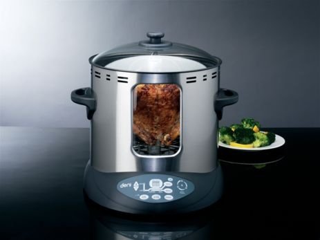 Deni's Vertical Rotisserie is perfect for healthy cooking indoors. The rotisserie heats up fast, cooks quickly and most important, clean up is a breeze. The rotisserie seals in juices and drains unhealthy fat from food as it cooks.