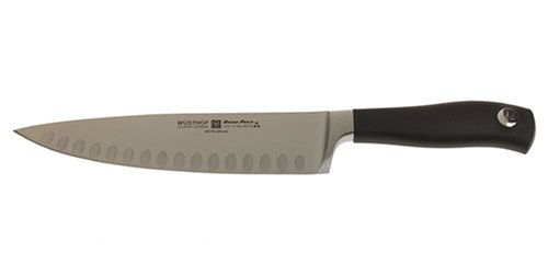 From Wusthof's Grand Prix II line, this 8-in. hollow edge chef's knife is similar to the chef's knife, an everyday knife for cutting, slicing, mincing and chopping. The indentations along the edge of the blade help prevent food from sticking as you cut. Each Grand Prix II knife is precision forged of a single blank of high carbon stainles